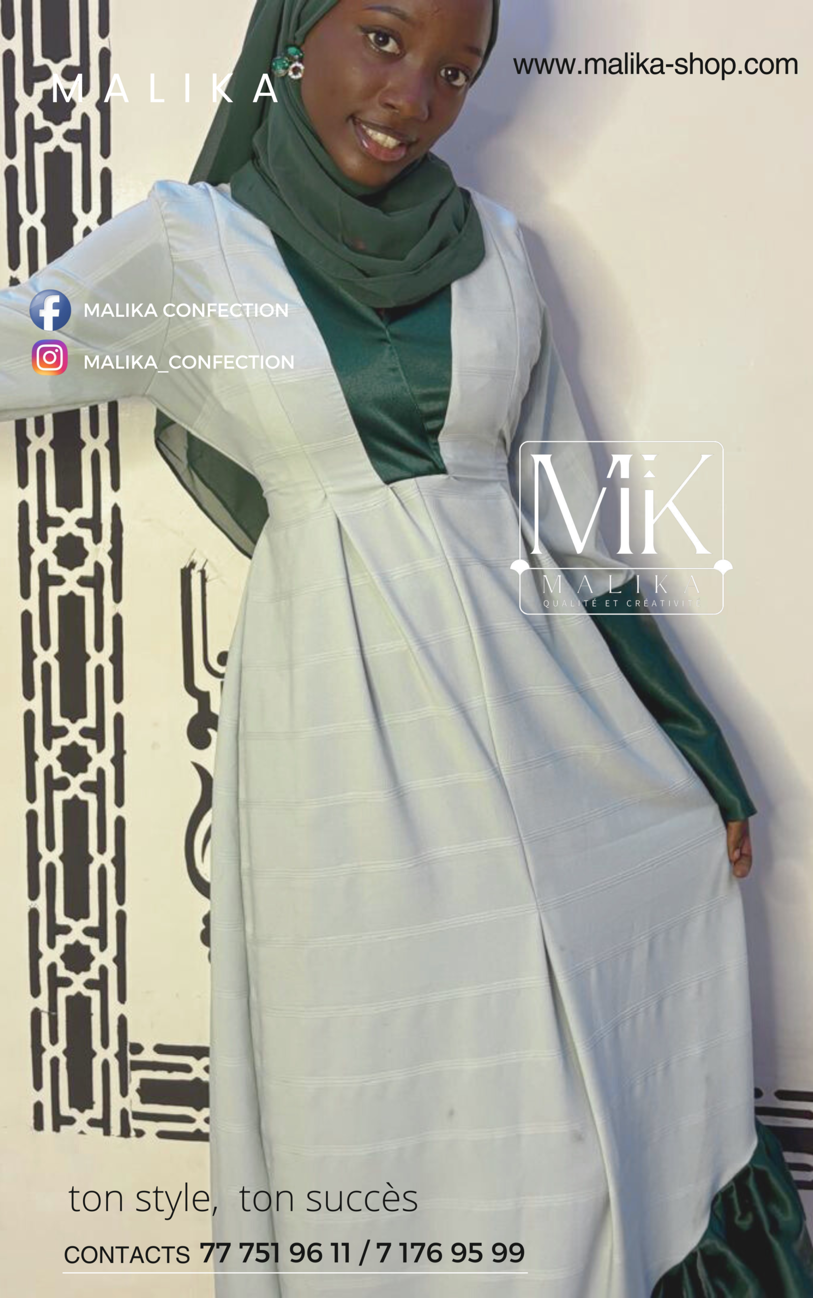 Magnifiquement conçue en vert et blanc, cette robe est l’alliée parfaite pour vos occasions spéciales.